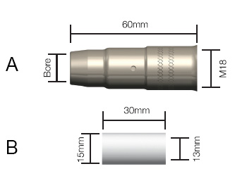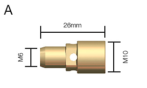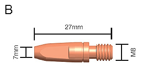 | B | 468-500-001 | Contact Tip M6 x 27mm | 0.6mm | CuCrZr | Range |