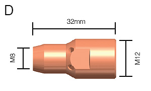 | C | 468-502-003 | Contact Tip M8 x 37mm | 0.8mm | CuCrZr | Range |