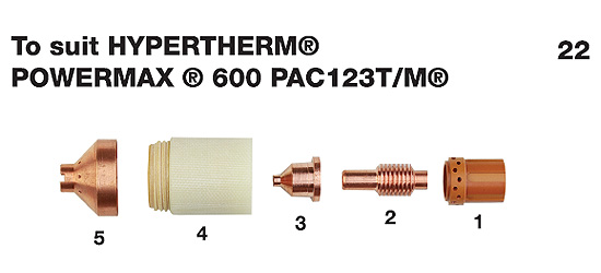 | To suit HYPERTHERM® POWERMAX ® 600 PAC123T/M® |