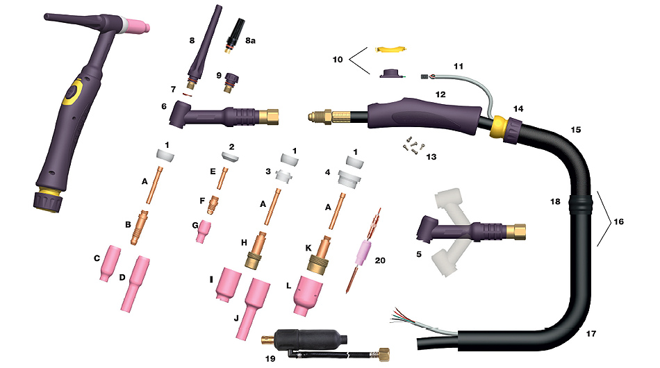 | P26FV | 200 Amp Tig Torch Body Flexi/Valve | ||||||