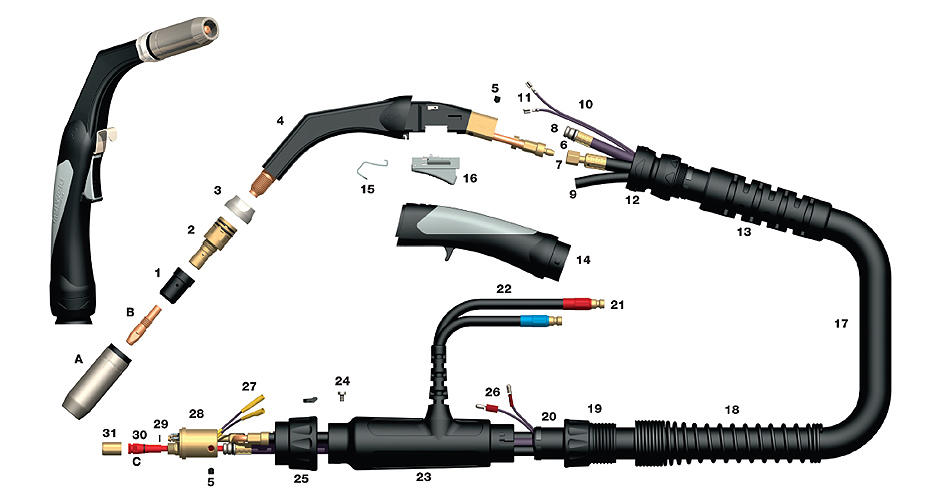 XP450W -30E -40E -50E Welding Torch c/w Euro Fitting